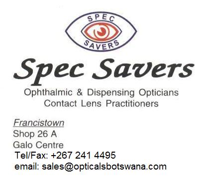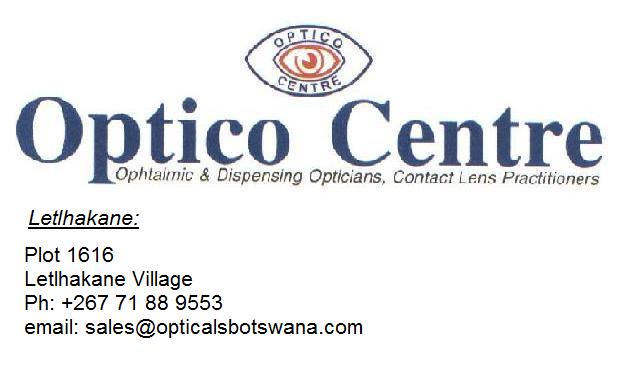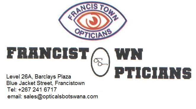 OPTICALS BOTSWANA Head Office Game City Maun MahalapyeOPTICO CENTREGaboroneFrancistownLethlakaneSPEC SAVERSGaboroneFrancistown FRANCISTOWN OPTICIANS Francistown SEBONI OPTOMETRISTMolepolole