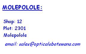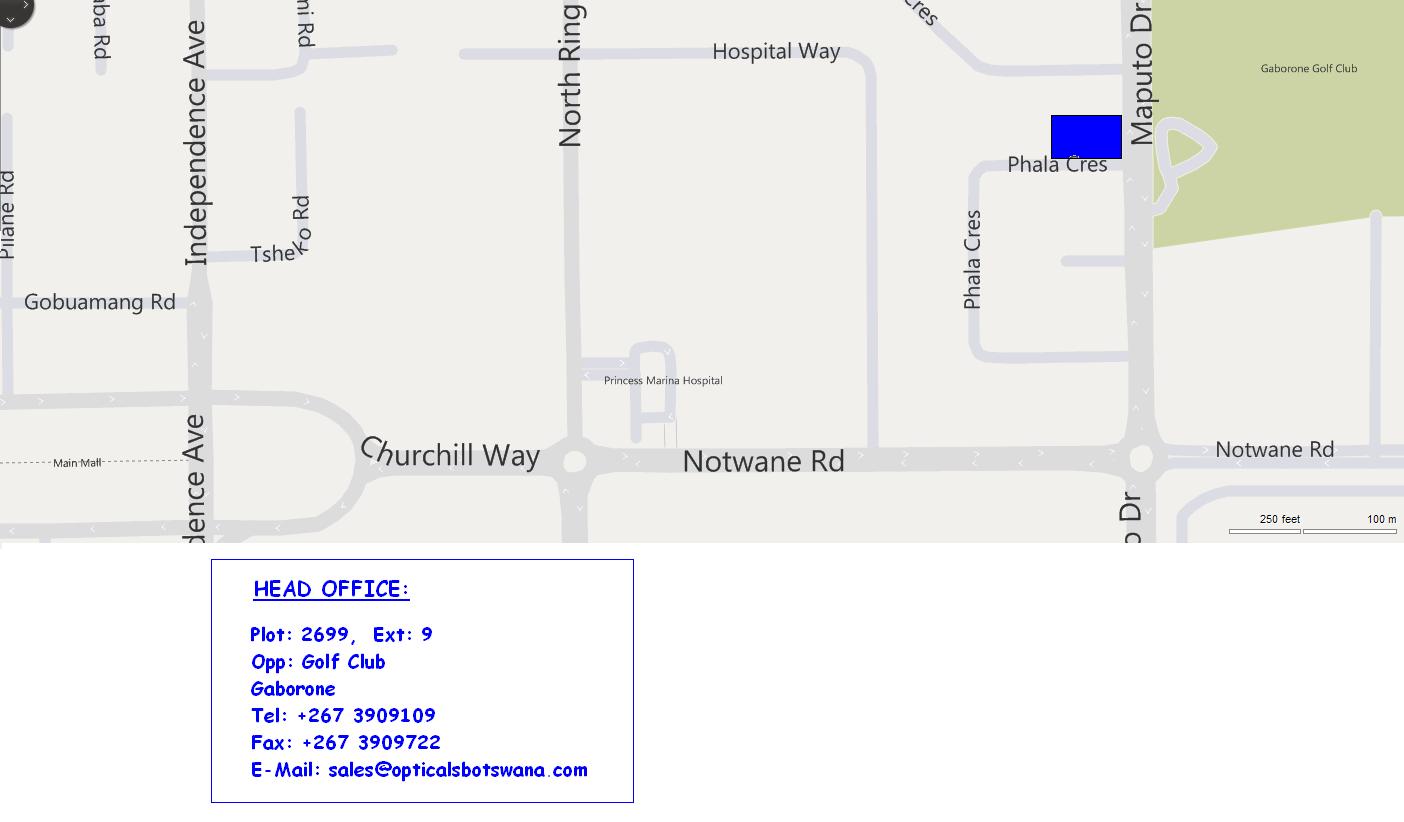 Plot 2699, Ext 9,Phala Crescent RoadGaborone, Botswanaph: +267-3909109fax: +267-3909722admin@opticalsbotswana.com